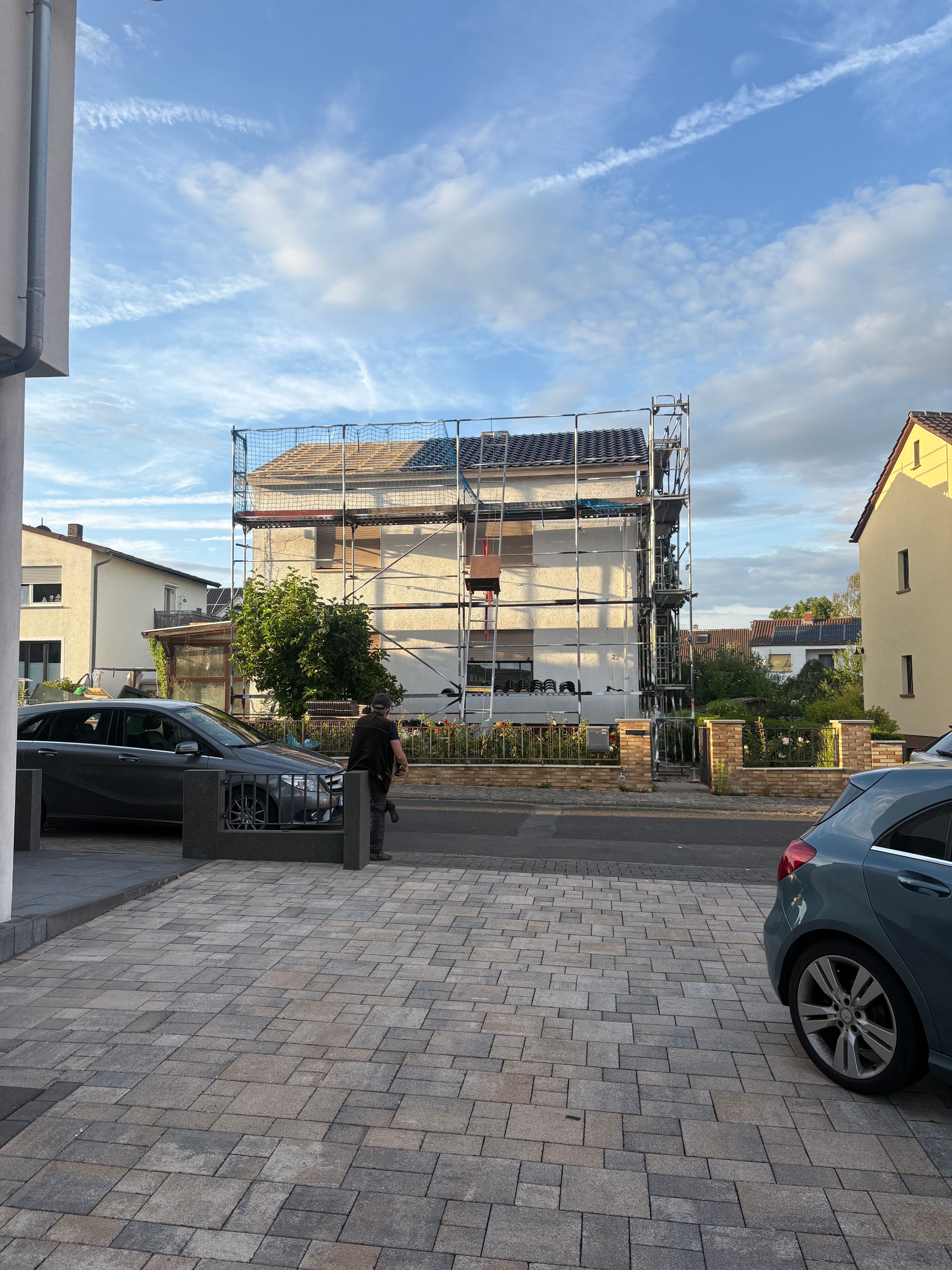 Bei diesem Einfamilienhaus in Heusenstamm haben wir das bestehende Satteldach vollständig saniert. Nach dem Aufbau des Gerüsts wurde die alte Dacheindeckung entfernt, um den Dachaufbau neu und ordentlich herzustellen. Ziel war ein solides Dach, das technisch sauber ausgeführt ist und zum Haus passt – ohne unnötige Spielereien.